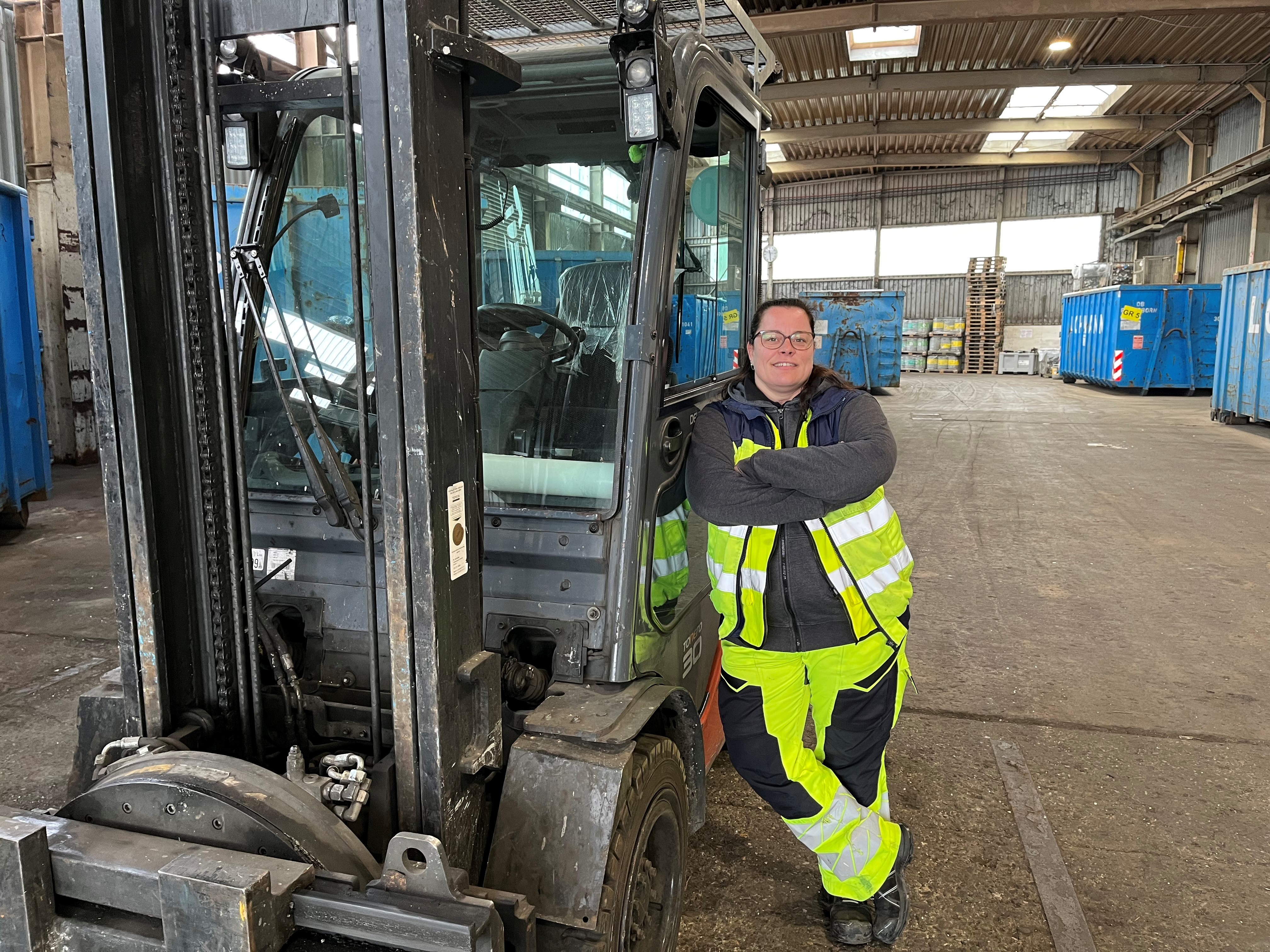 „Ich bin damals als Quereinsteiger gestartet, komme also eigentlich gar nicht aus dieser Branche. Angefangen bin ich vor etwa sieben Jahren als Recyclinghof-Mitarbeiterin. Zu meinen Aufgaben gehörten zum Beispiel die Kasse, Bagger, Stapler und Radlader fahren, Kunden betreuen und einweisen, LKWs ein- und auswiegen. Dann habe ich mir irgendwann den Hof-Koordinator erarbeitet, das heißt ich bin heute für das Personal auf dem Hof verantwortlich, für die Koordination und die Dienstpläne, die Organisation – also dafür, dass das Tagesgeschäft reibungslos läuft. Das Beste an meinem Job? Jeder Tag ist wie ein Überraschungsei.“